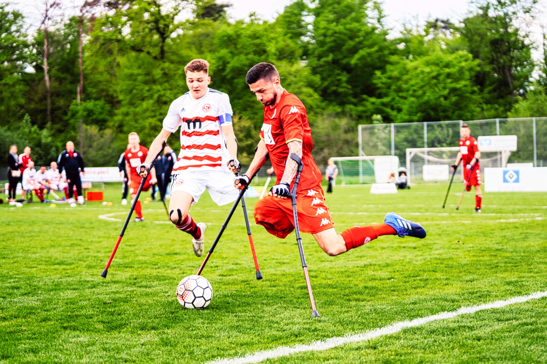 Am Morgen vor dem Training war ich sehr nervös und gleichzeitig aber auch voller Vorfreude. Denn wie würde es sich bloß anfühlen, einbeinig auf Krücken dem runden Leder nachzujagen? Und ich kann sagen, dass es sich wunderbar anfühlte!! Natürlich war es eine Umstellung und natürlich hatte ich am nächsten Tag am ganzen Körper Muskelkater. Aber dieses Gefühl wieder kicken zu können war einfach unbeschreiblich für mich! Außerdem wurde ich direkt von Anfang an in eine tolle Gemeinschaft der Amputierten-Fußballer aufgenommen. Der Austausch und der freundliche Umgang untereinander waren sehr hilfreich für mich.