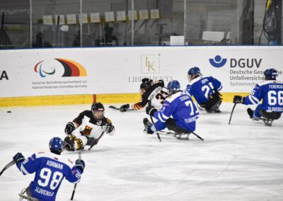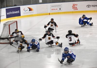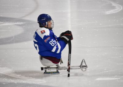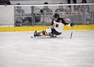 Para Eishockey, auch als Schlitten-Eishockey bezeichnet, ist seit den Winterspielen 1994 im norwegischen Lillehammer fester Bestandteil im Programm der Paralympics. Die dynamische und zweikampfbetonte Sportart wurde in den nordischen Ländern entwickelt und richtet sich an Sportler*innen, die aufgrund einer Einschränkung der unteren Extremitäten nicht in der Lage sind, Fußgänger-Eishockey zu spielen. Die Para Eishockey-Spieler*innen bewegen sich sitzend in einem speziellen Schlitten auf dem Eis fort. Dabei nutzen sie zwei Schläger, die an deren Enden mit Spikes bzw. Dornen versehen sind. Gleichzeitig werden die etwas kürzeren Schläger auch zum Passen und Schießen verwendet, wodurch die Kreativität während des Spiels gefördert wird.